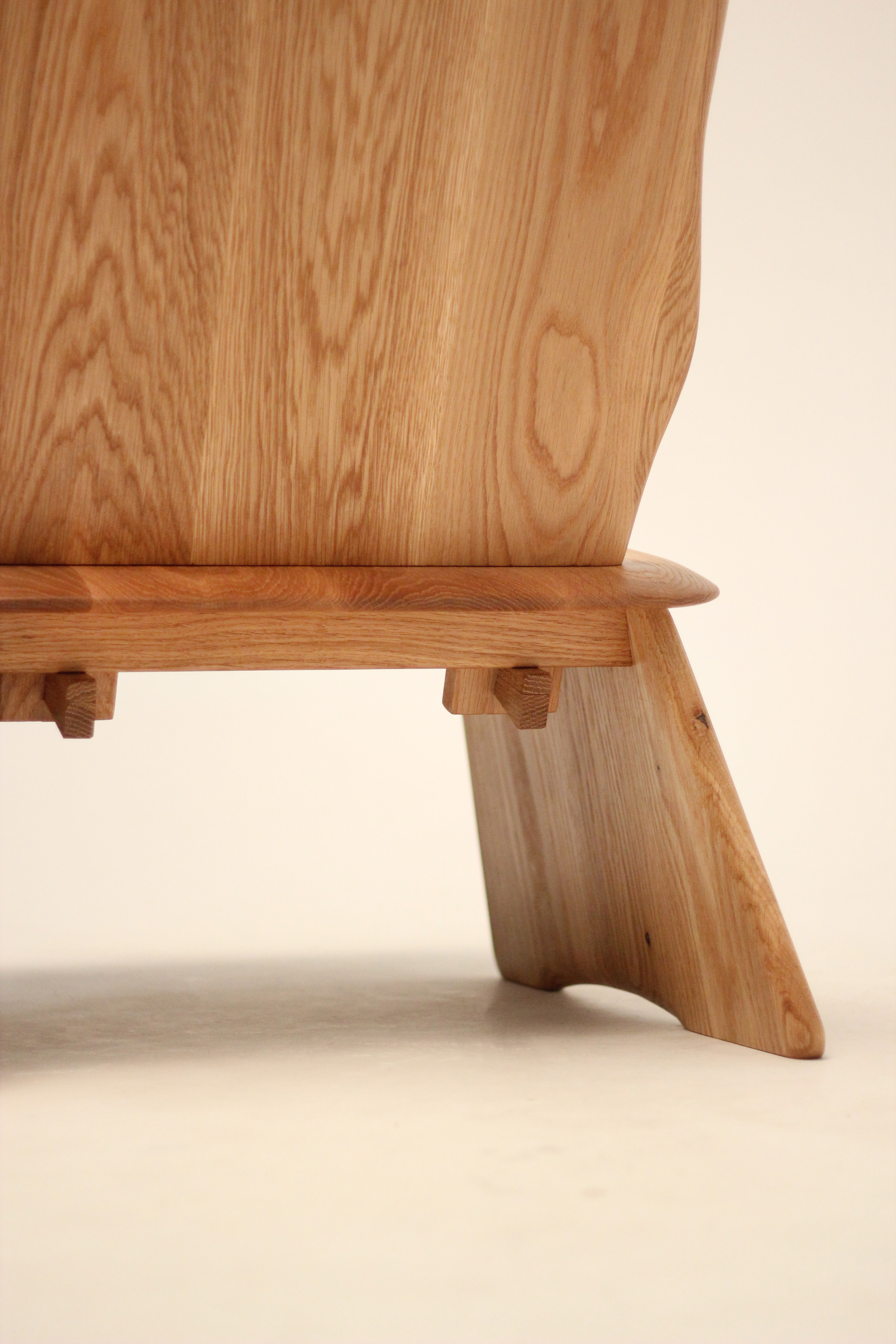 Inspired by vernacular furniture forms and traditional chair joinery, I designed this solid white oak lounge chair to be as spacious and comfortable as possible. Seat and back are hand-carved and can be disassembled from the base.